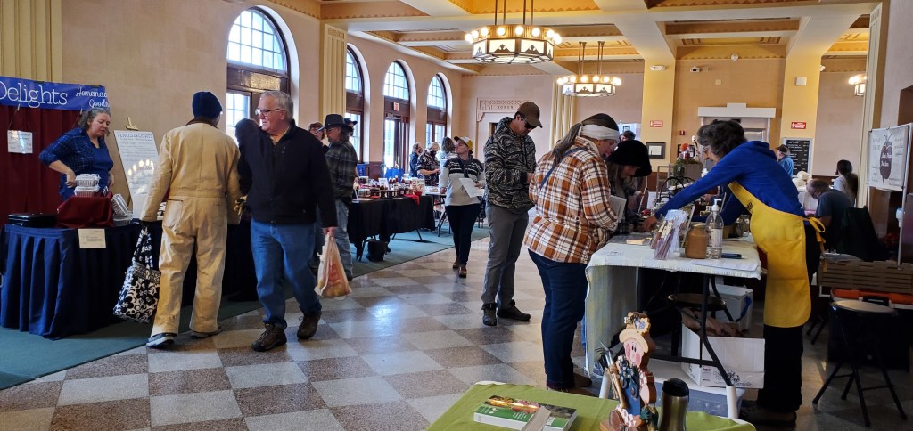 Saturday, at the Cheyenne Winter Farmers Market at the Cheyenne Depot, weather kept several vendors away so there was room for Verena Booth, Cheyenne Honey, who sells “Cheyenne Garden Gossip” books, to set up a table for me next to hers.